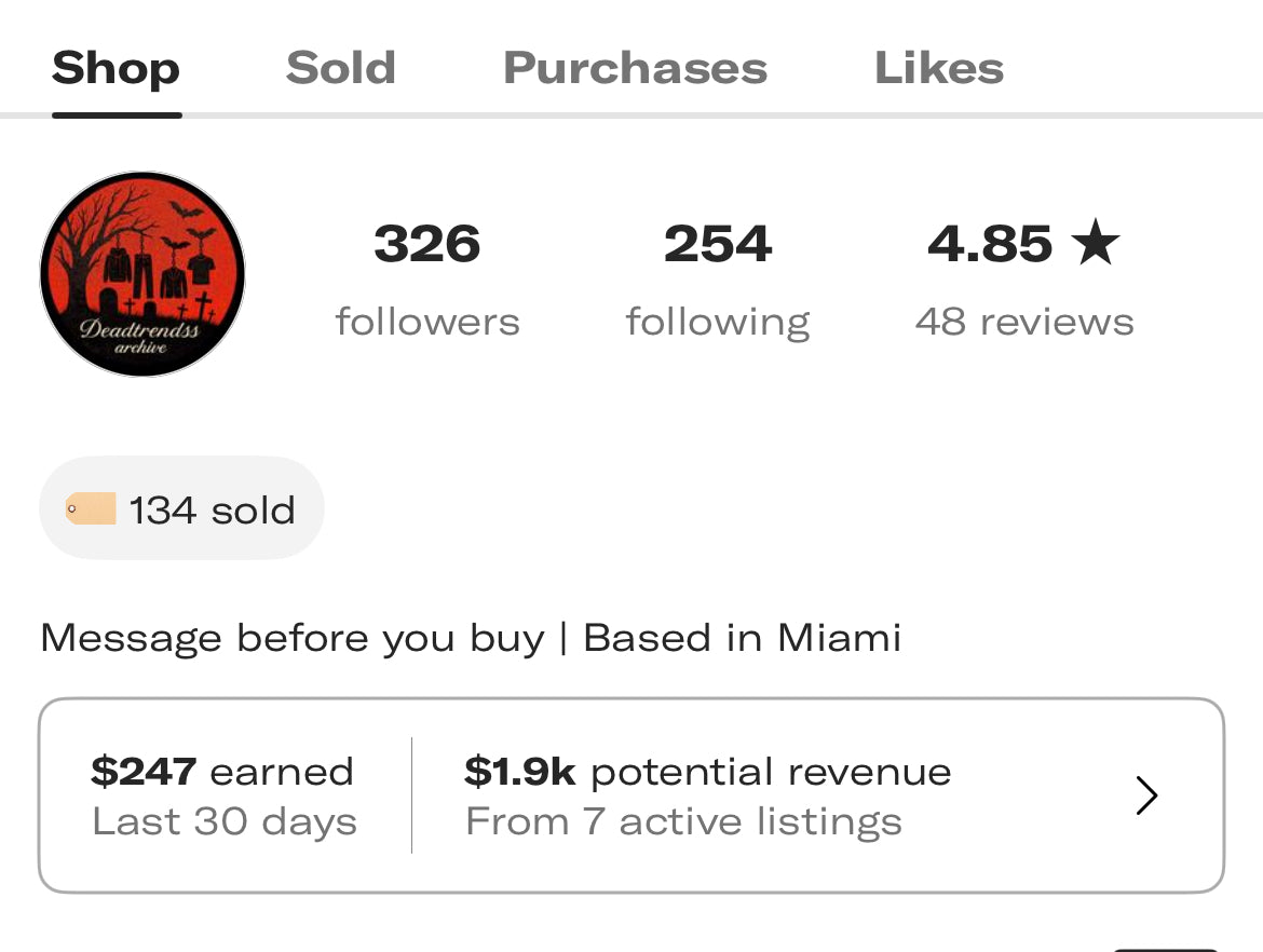 Depop was the first platform where I began selling from my own closet before moving into vintage and archive pieces. Over time, I built a trusted presence and consistently maintained high ratings, reflecting my focus on authenticity, quick shipping, and buyer satisfaction.