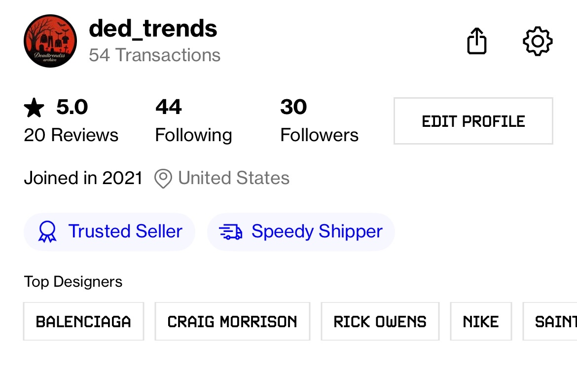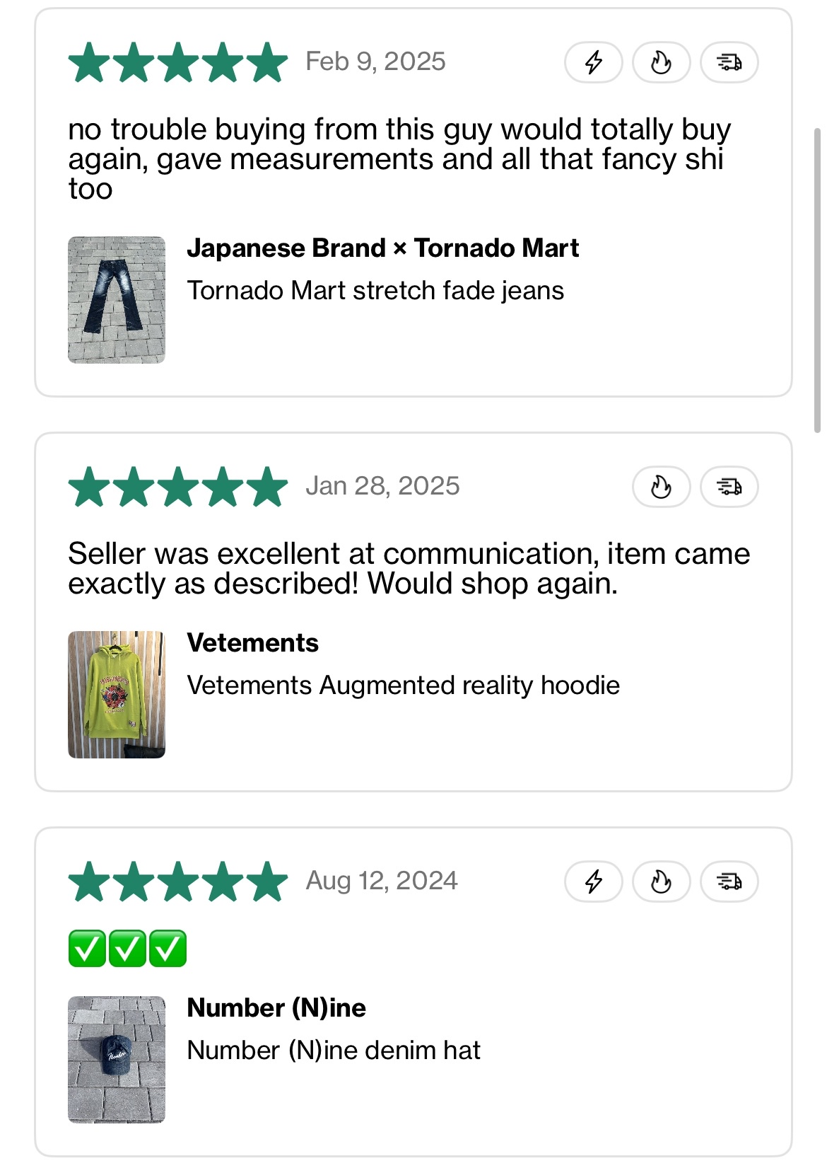 After building a foundation on Depop, I branched out into Grailed to reach a wider audience of archive and designer buyers. On this platform, I continued to provide the same reliable service and curation, further proving my commitment to quality and trust in every sale.